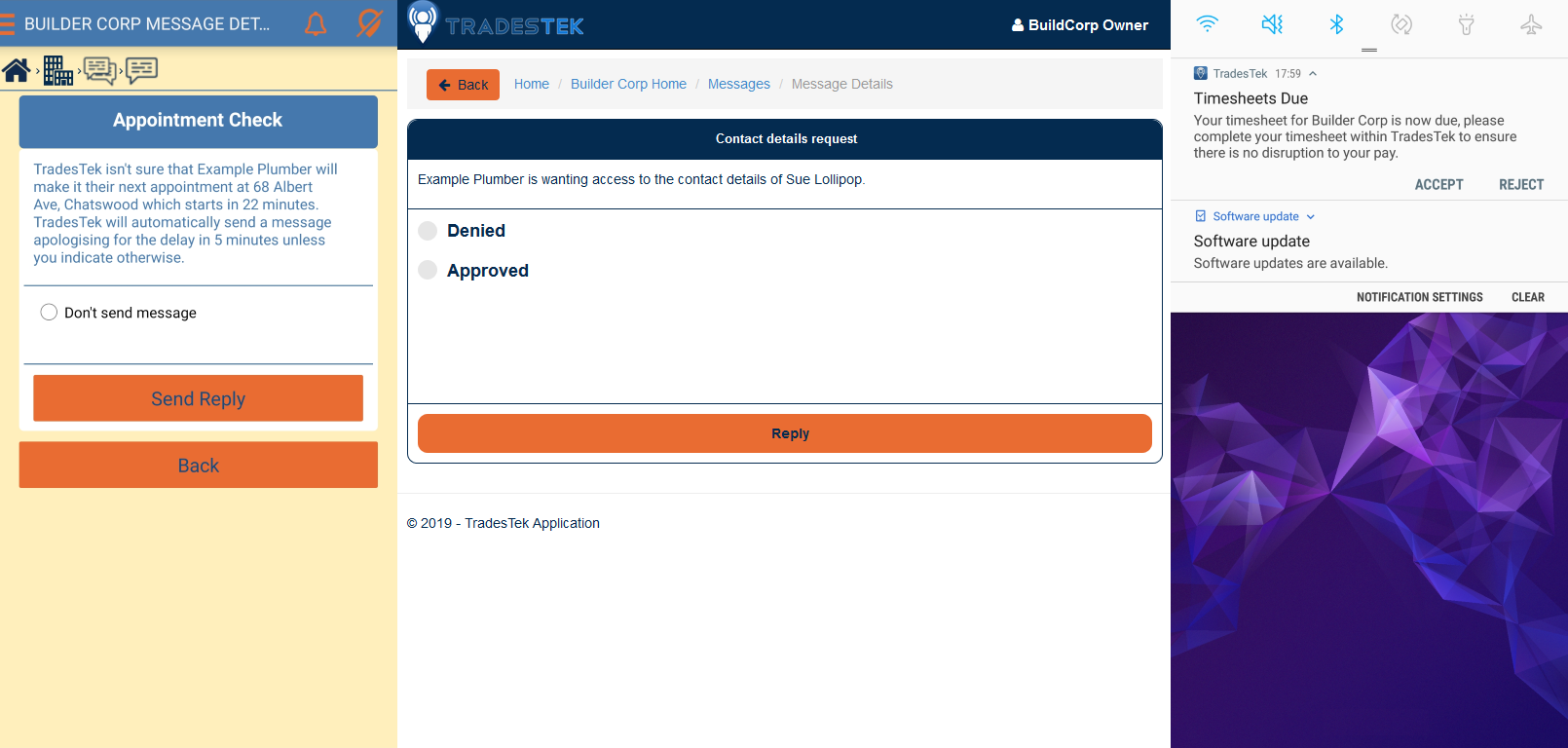 Tradestek notifies you whenever action may be required. This can include an appointment about to be missed, your timesheet is due, or a worker requiring access to confidential information.