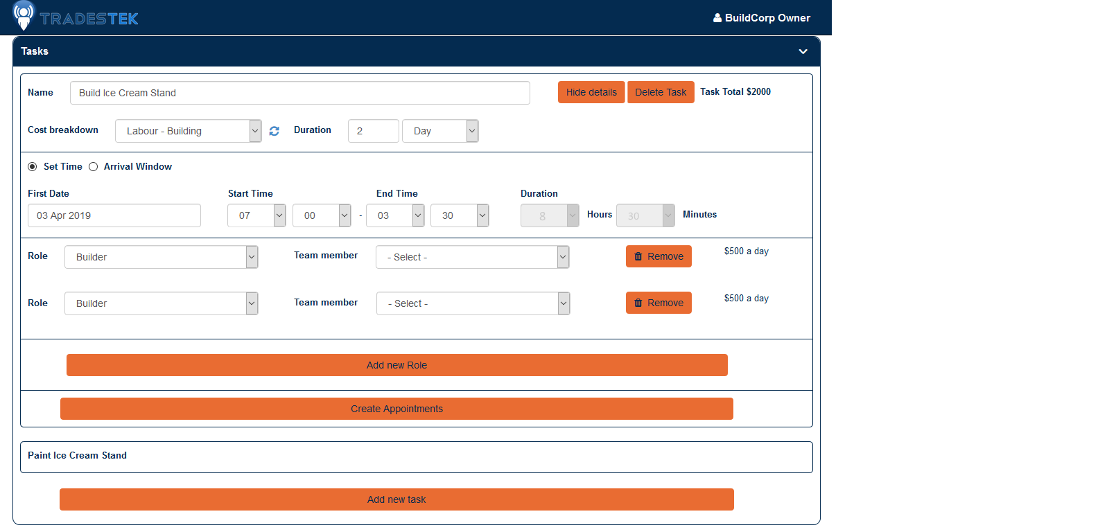 To convert the task to individual appointments simply select the date and workers and the create appointments will add the necessary entries to the workers schedule.