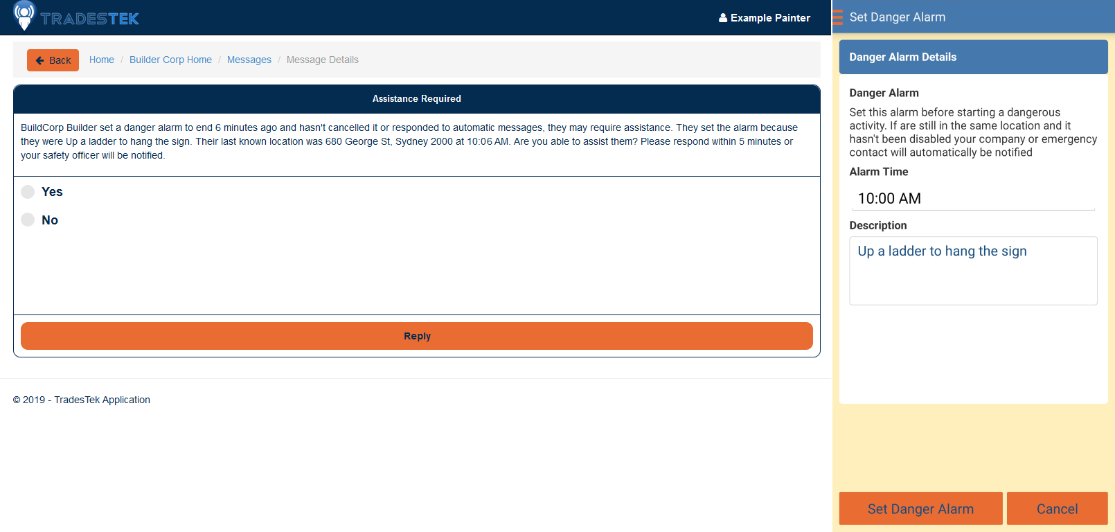 After completing the activity disable the alarm or leave the job site and nothing more happens, but in the unlikely event that you need it your closest college and safety officer will be notified so check on you and render assistance.