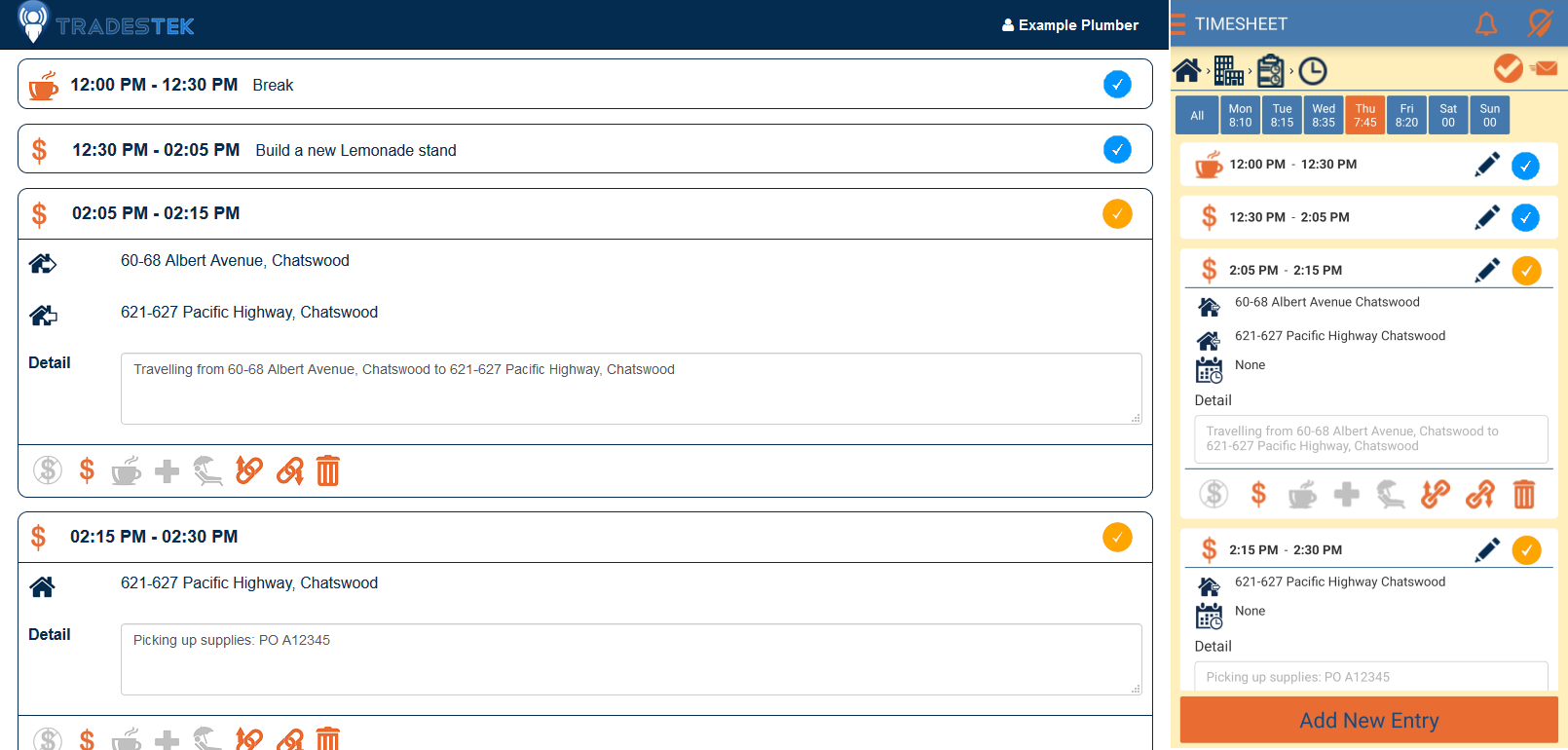 Timesheets are automatically completed for each worker based on their logbooks and job attendance, all the worker has to do is enter any additional information like the reason for an unexpected trip off the job site or information to why a job ran late and submit.